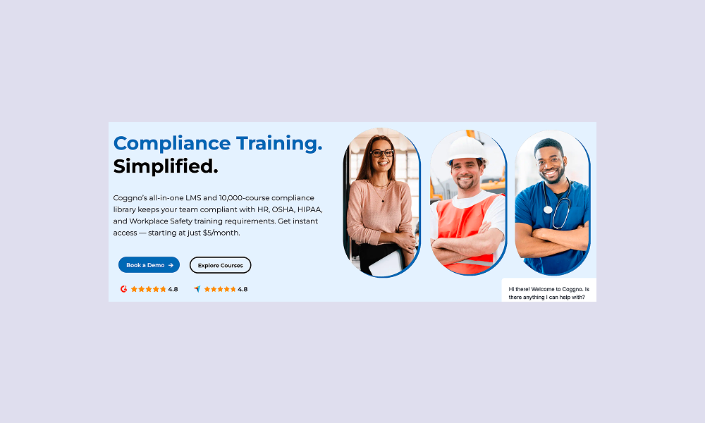 Coggno runs a marketplace model. Instead of paying for a full library upfront, you buy individual courses as you need them. With over 10,000 compliance courses covering OSHA, HIPAA, GDPR, and more, the selection is broad. The LMS functionality — tracking, certificates, reporting — is included at no extra cost.
